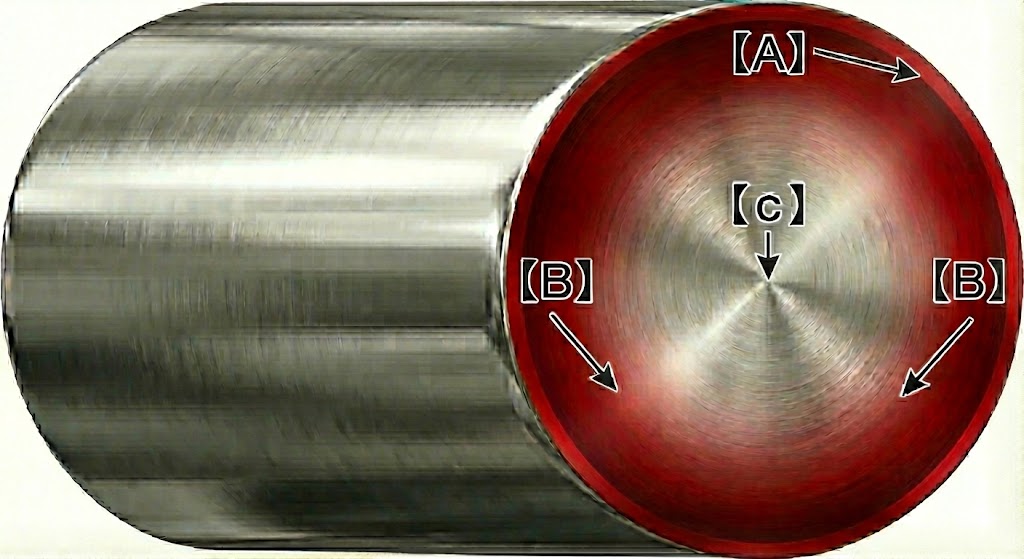 図1 浸炭処理を施した棒材断面をモデル的に示したもの